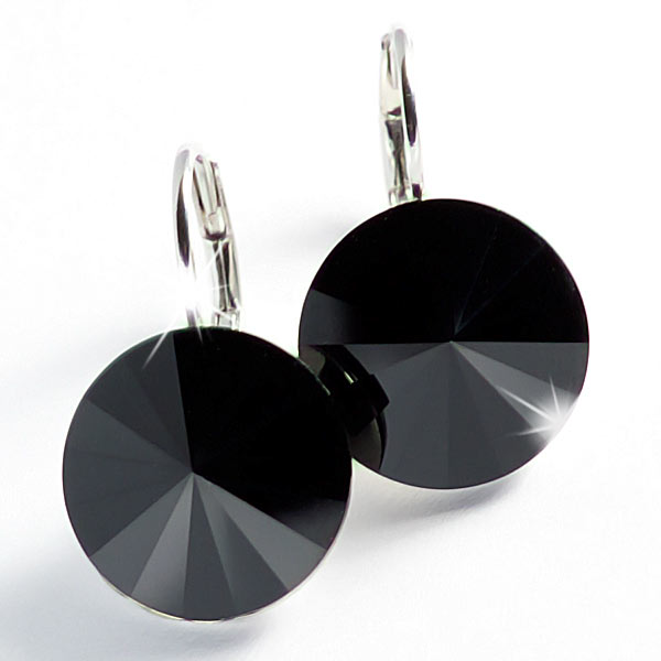 1 Paar Ohrhänger gefertigt mit Swarovski® Rivoli Kristallen (12 mm), Farbe Jet