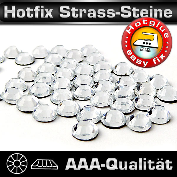 Hotfix Strasssteine in AAA-Qualität - Funkeln und Glitzern zum Spitzen-Preis Größe: SS6 = ca. 1,8 mm Farbe: Kristall - Transparent Material: Glas Facettenzahl: 8 Fertigung: gepresst - Ober- und Unterseite geschliffen (2 cut)