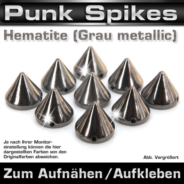 Größe: 8 mm hoch, Ø unten 10 mm Farbe: Hematite (Grau glänzend) Form: Kegel spitz Material: Kunststoff