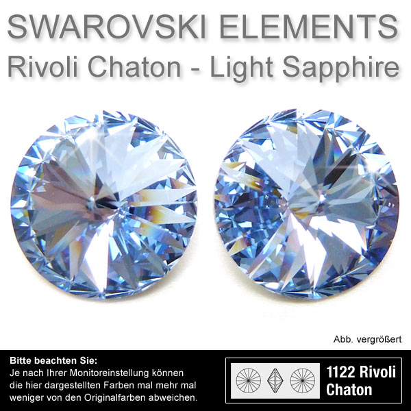 Swarovski® Kristalle Rivoli Chaton 1122, 12 mm Light Sapphire