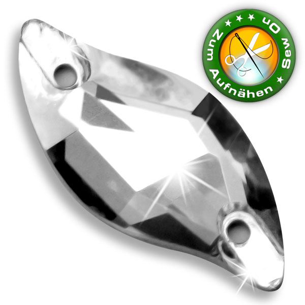 ShineStone DeLuxe Blatt geschwungen, 9,5x20 mm Crystal (Strass Steine zum Aufnähen)