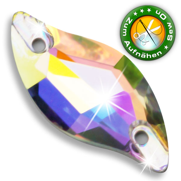 ShineStone DeLuxe Blatt geschwungen, 9,5x20 mm Crystal AB (Strass Steine zum Aufnähen)